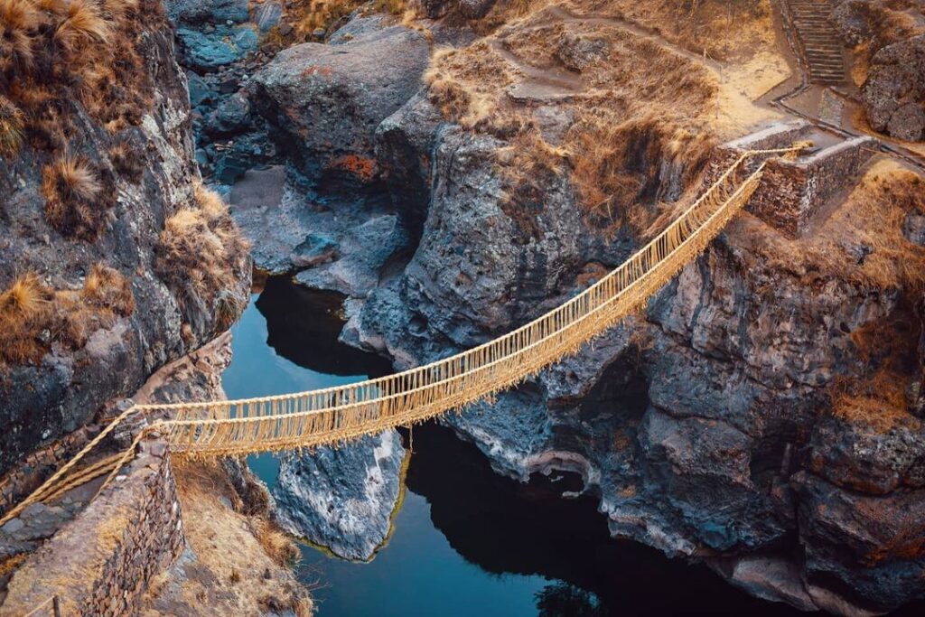 CONOCIDO COMO Q’ESWACHAKA, Queshuachaca o Keshwa Chaca, este es uno de los únicos ejemplos que quedan de los puentes incas tejidos a mano que alguna vez fueron comunes en el sistema de carreteras incas.